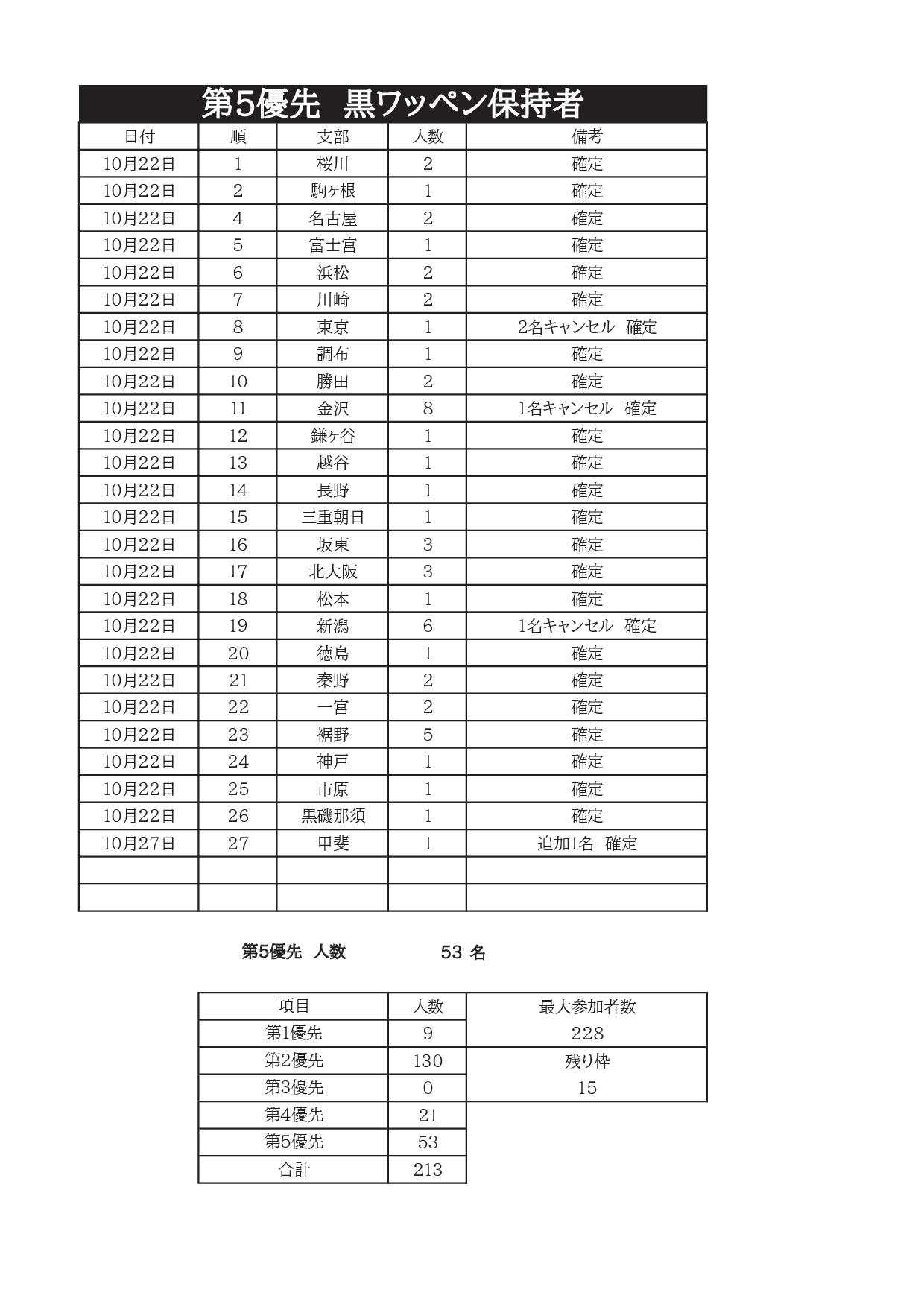※ 「白ワッペン枠」はありません。白ワッペンの方は今年度連盟主催大会入賞者に限り、第2優先枠でエントリー可能です。
