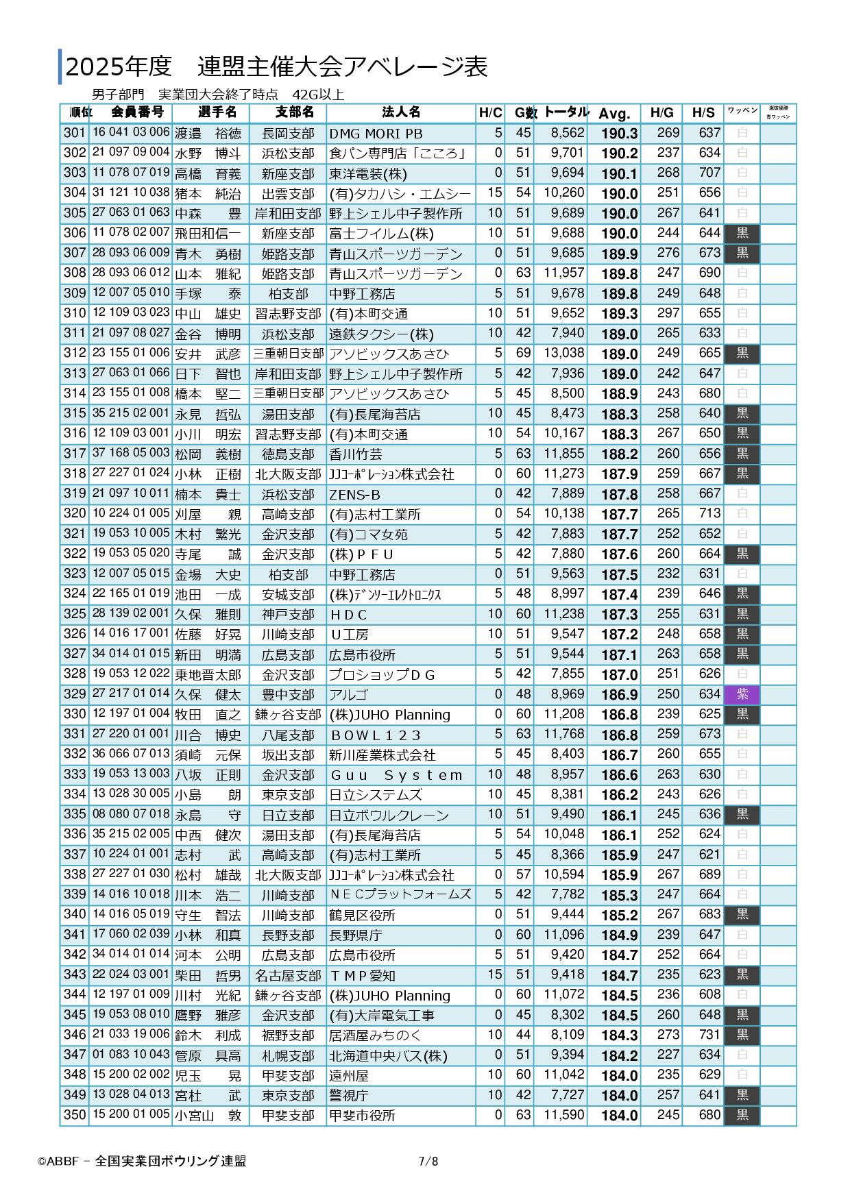 ●2025年度 アベレージランキング(実業団選手権終了時点)