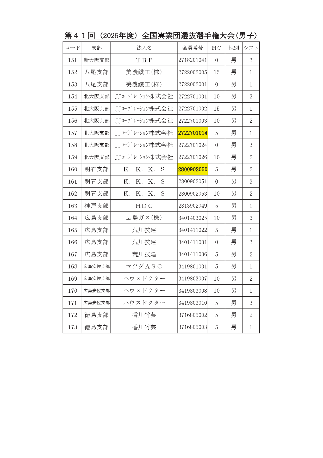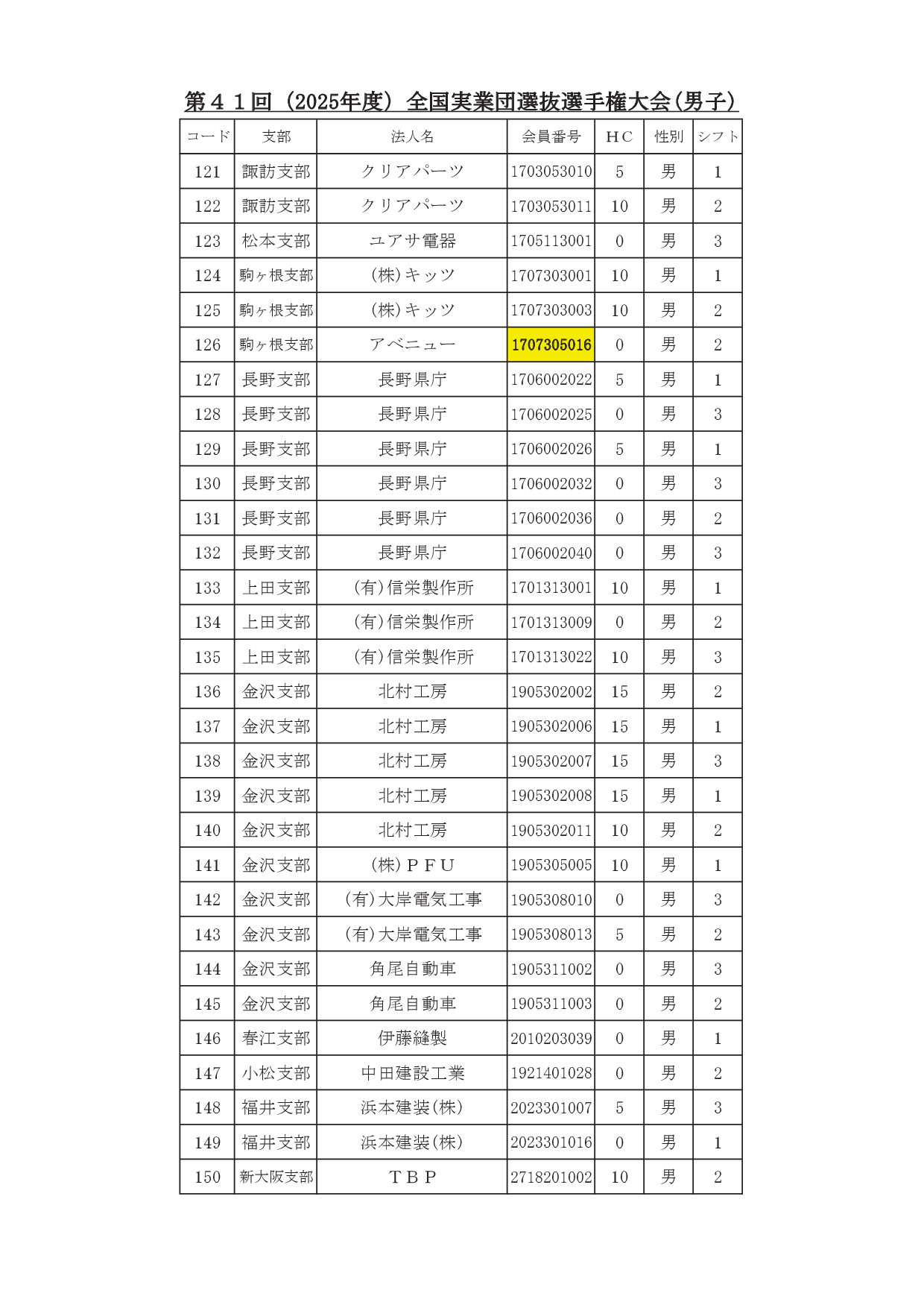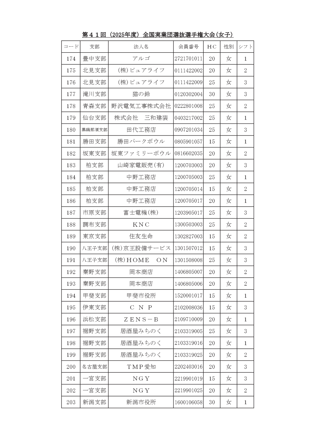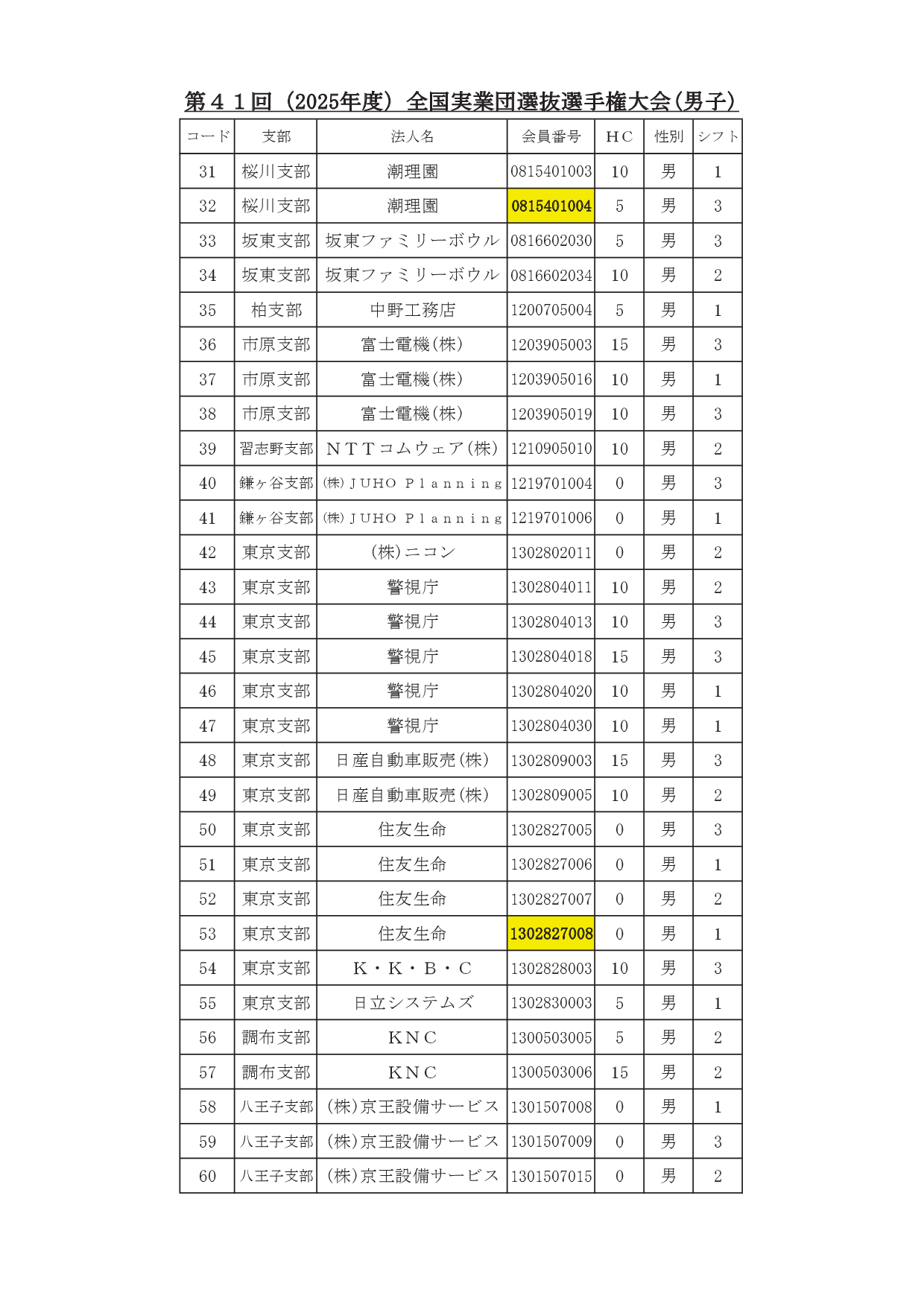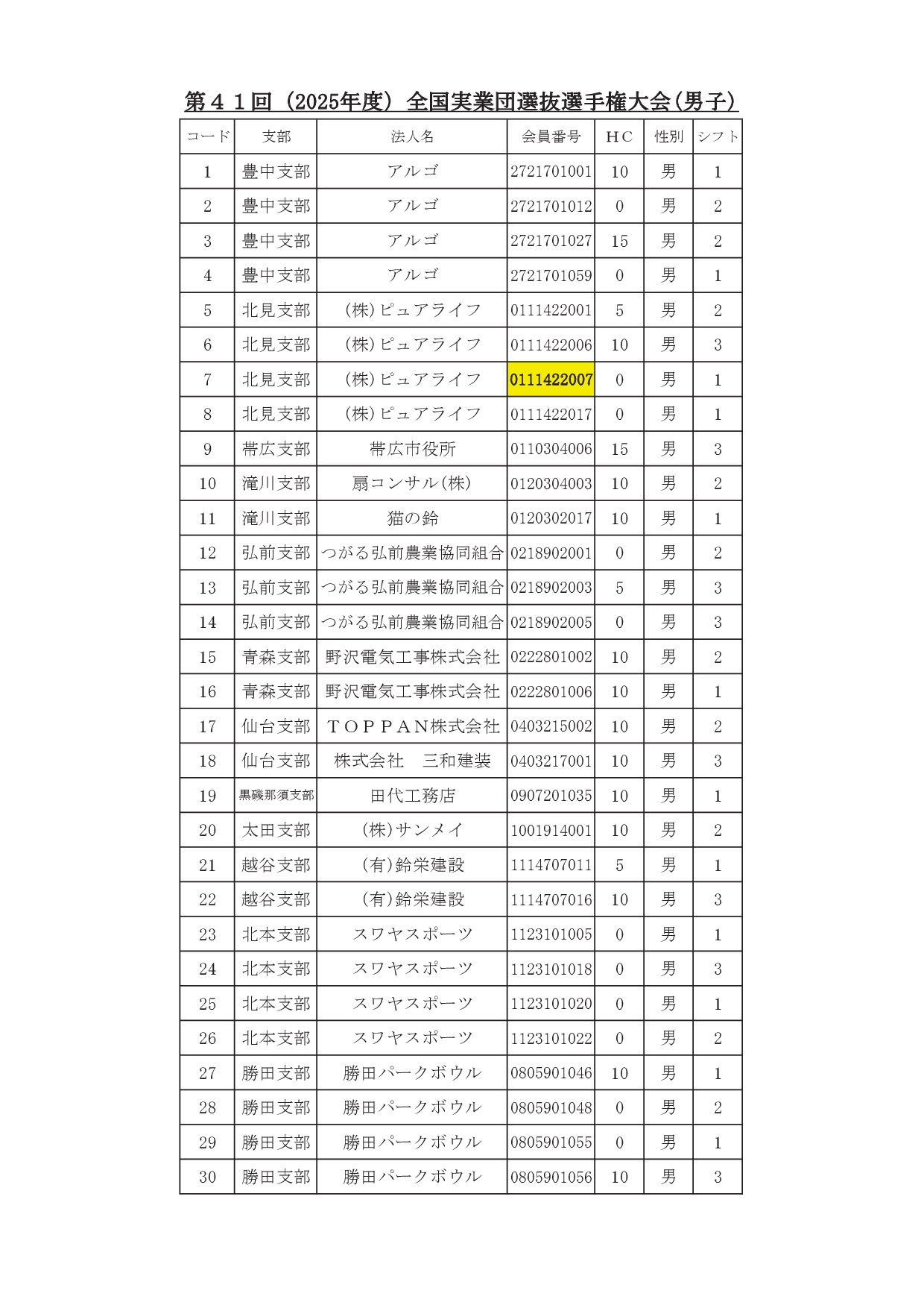 第41回 選抜選手権大会(2025年12月6日~12月7日、藤枝グランドボウル)のシフト分けをお知らせいたします。