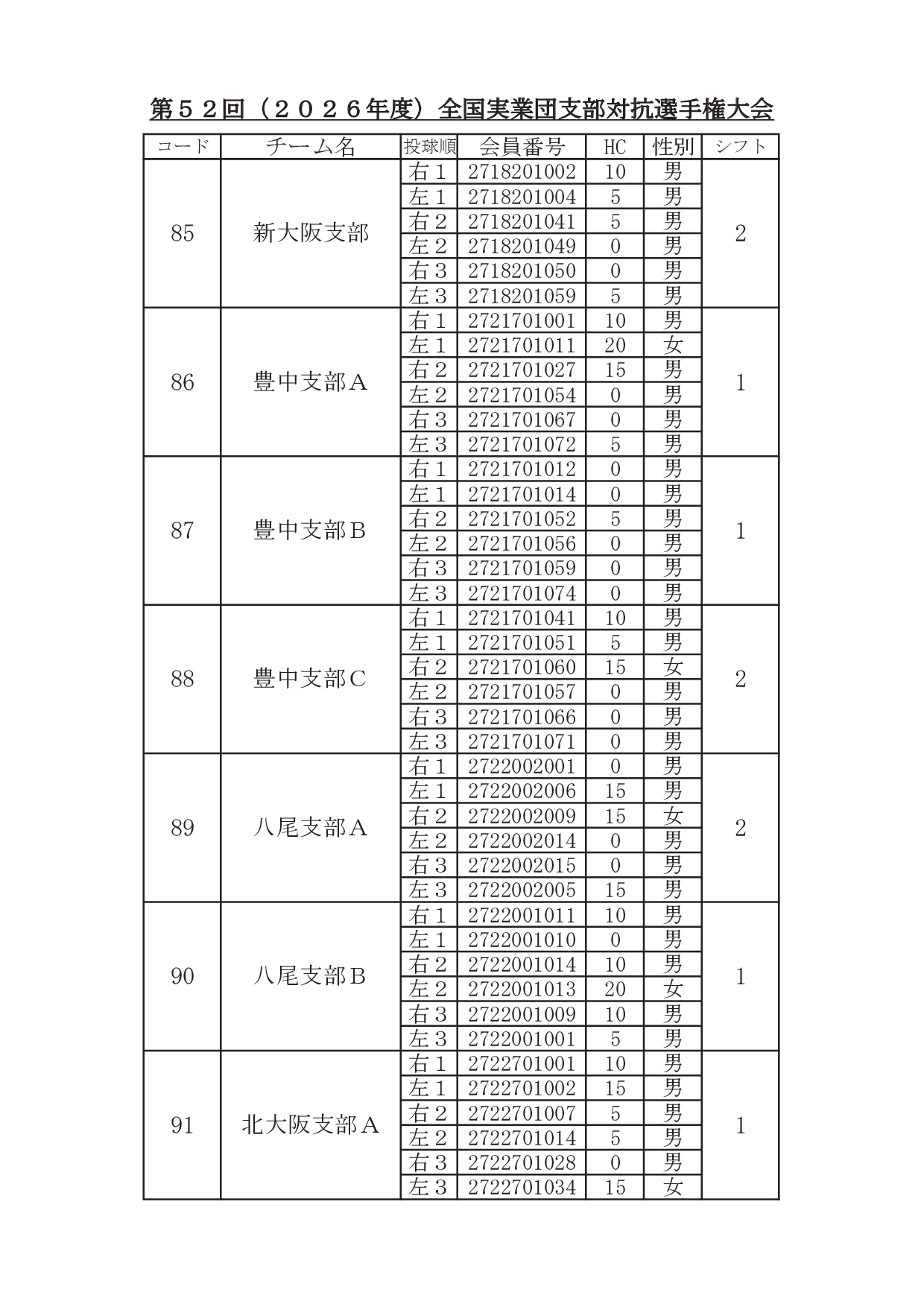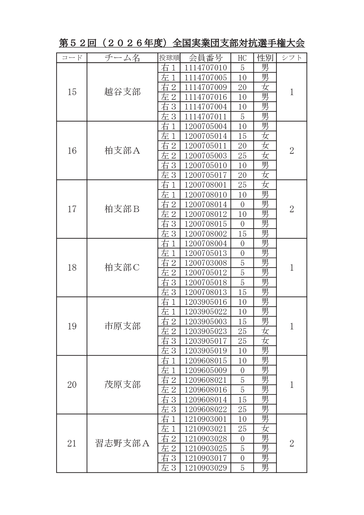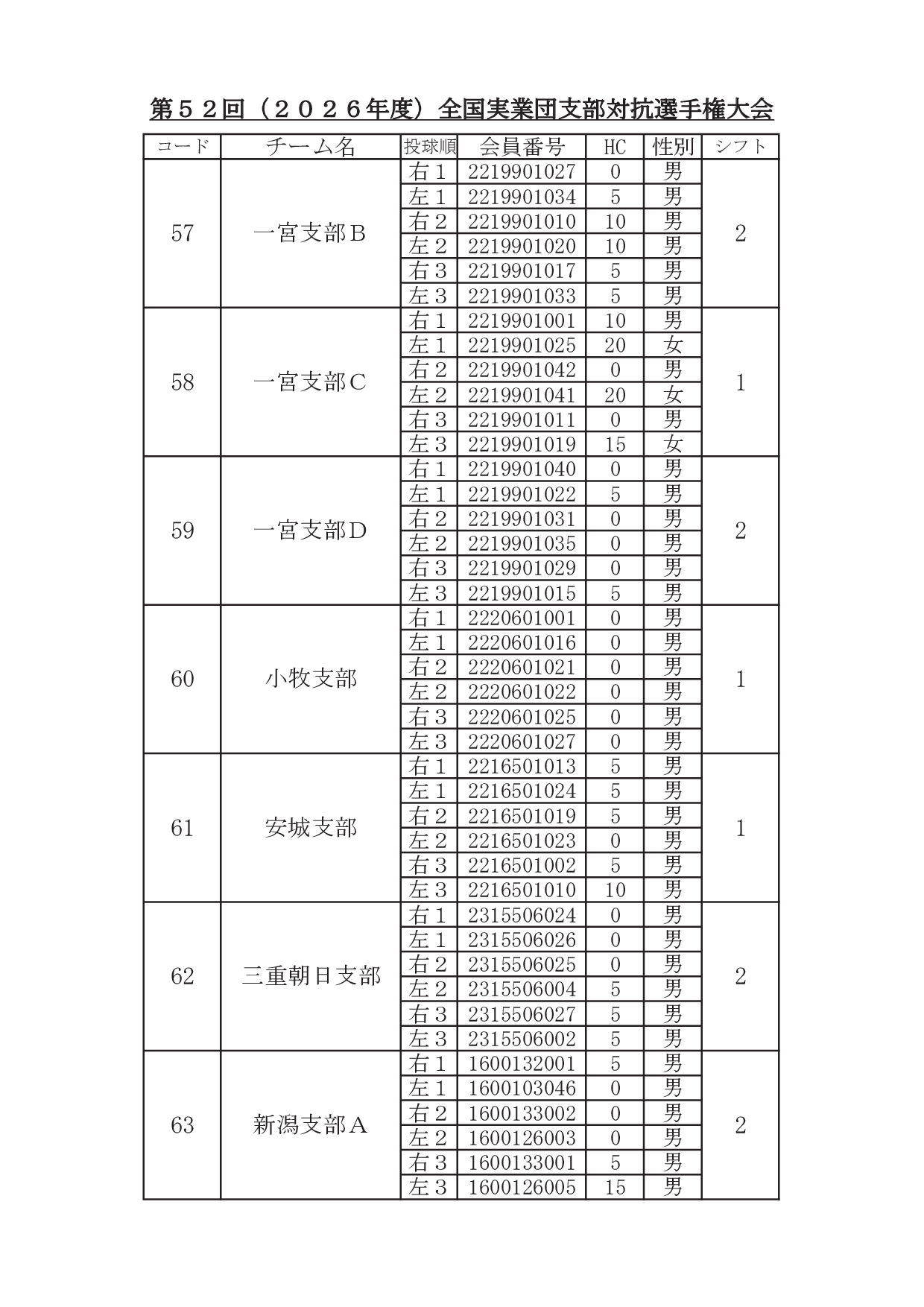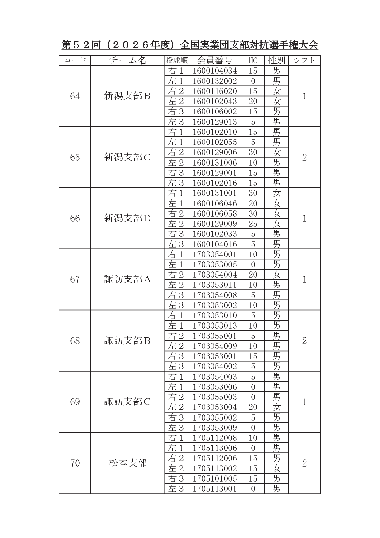 2026年1月29日 / 最終更新日時 : 2026年1月31日 東田 達也 支部対抗選手権 ●支部対抗選手権大会 シフト分け 寺尾杯争奪 第52回 支部対抗選手権大会(6人チーム戦、2026年3月7日~8日、稲沢グランドボウル)参加チームのシフト分けをお知らせいたします。 ※ 競技委員は、当日パンフレットにてご確認ください。 大会要項他はこちら ↓ ↓ ↓ ●寺尾杯争奪 第52回 支部対抗選手権大会 募集要項・申込書 ●支部対抗選手権大会 オイルパターン いいね:いいね 読み込み中…FacebookXCopy