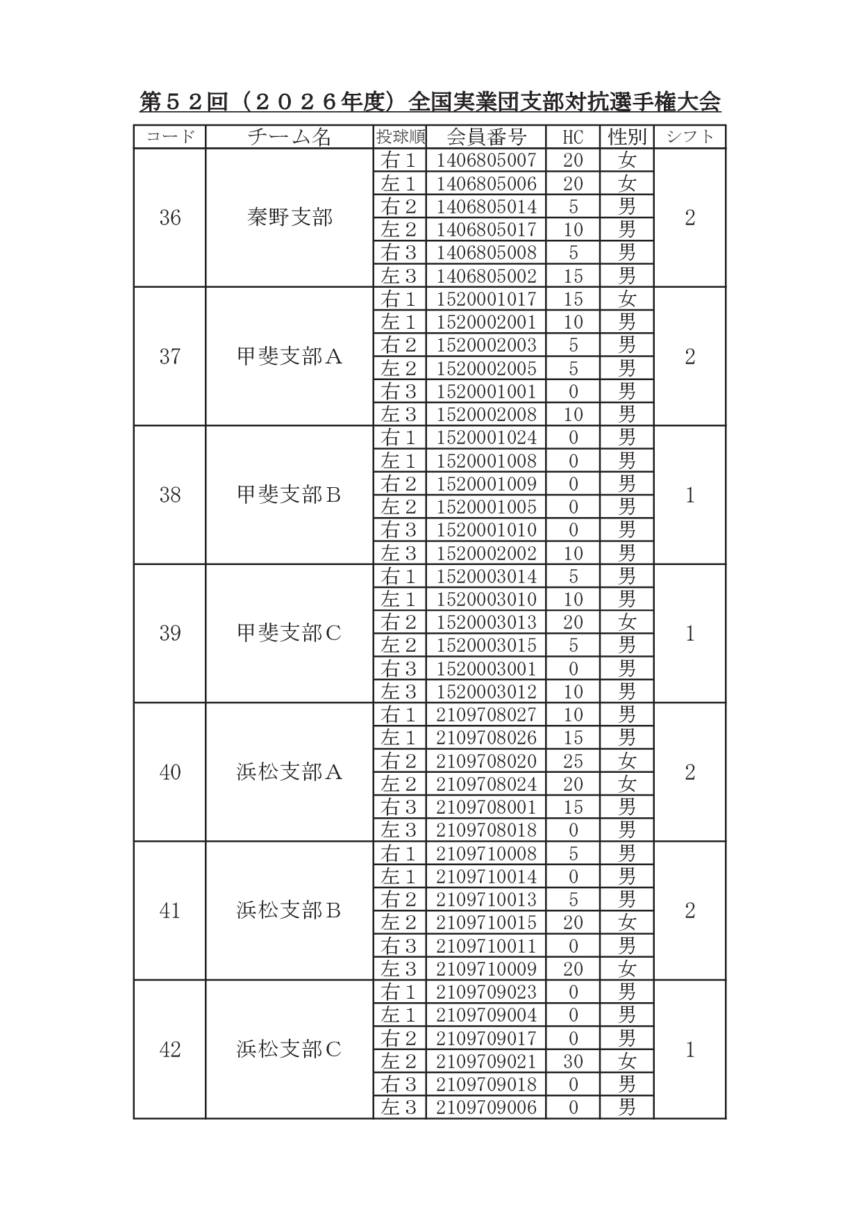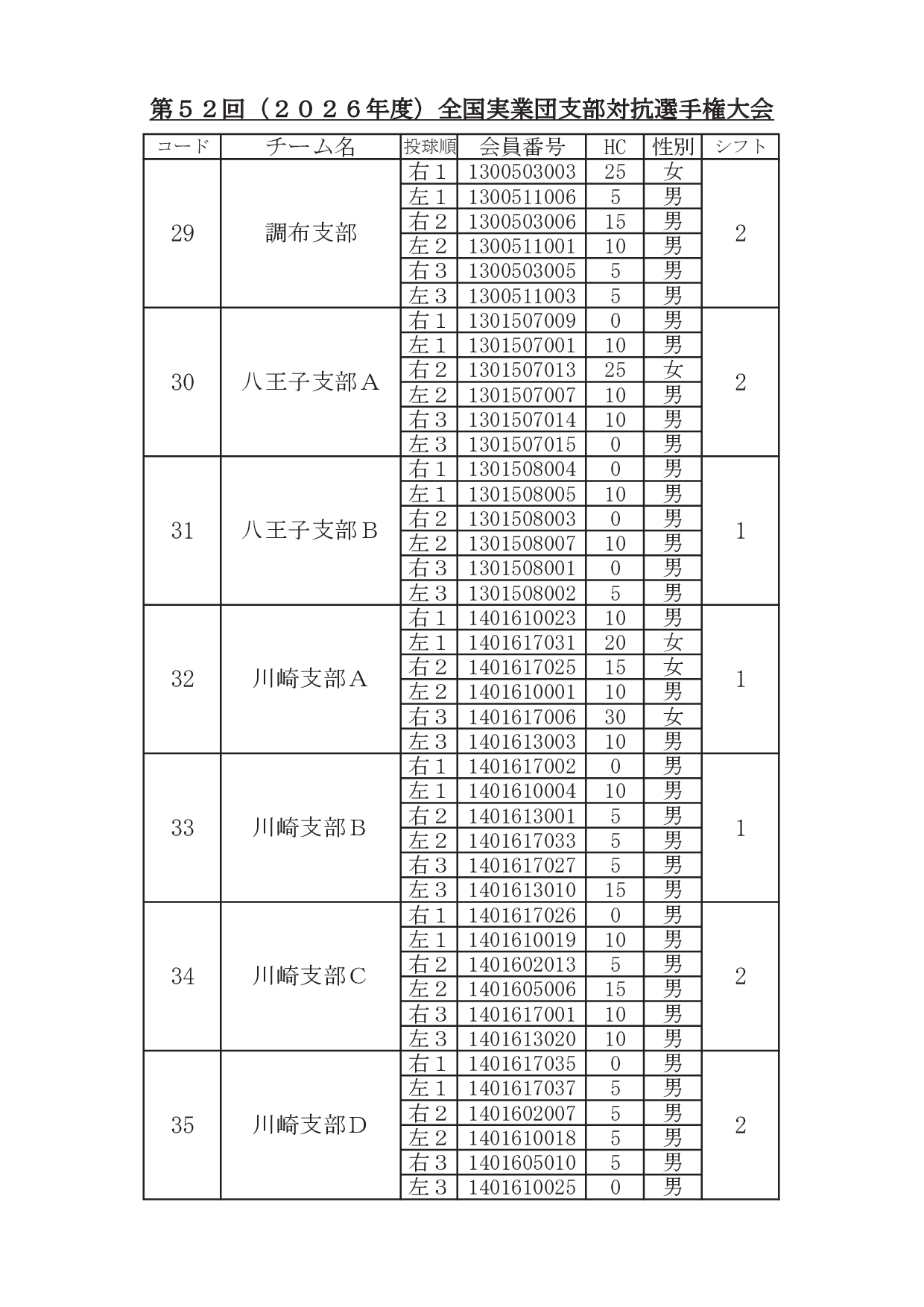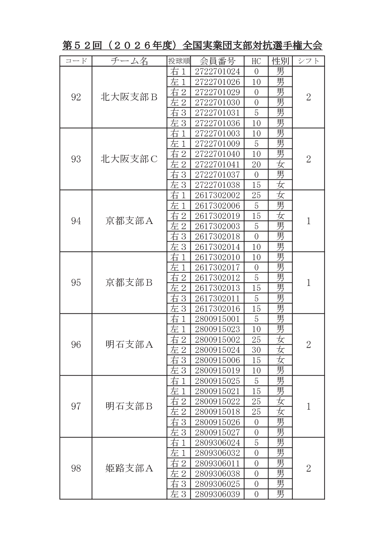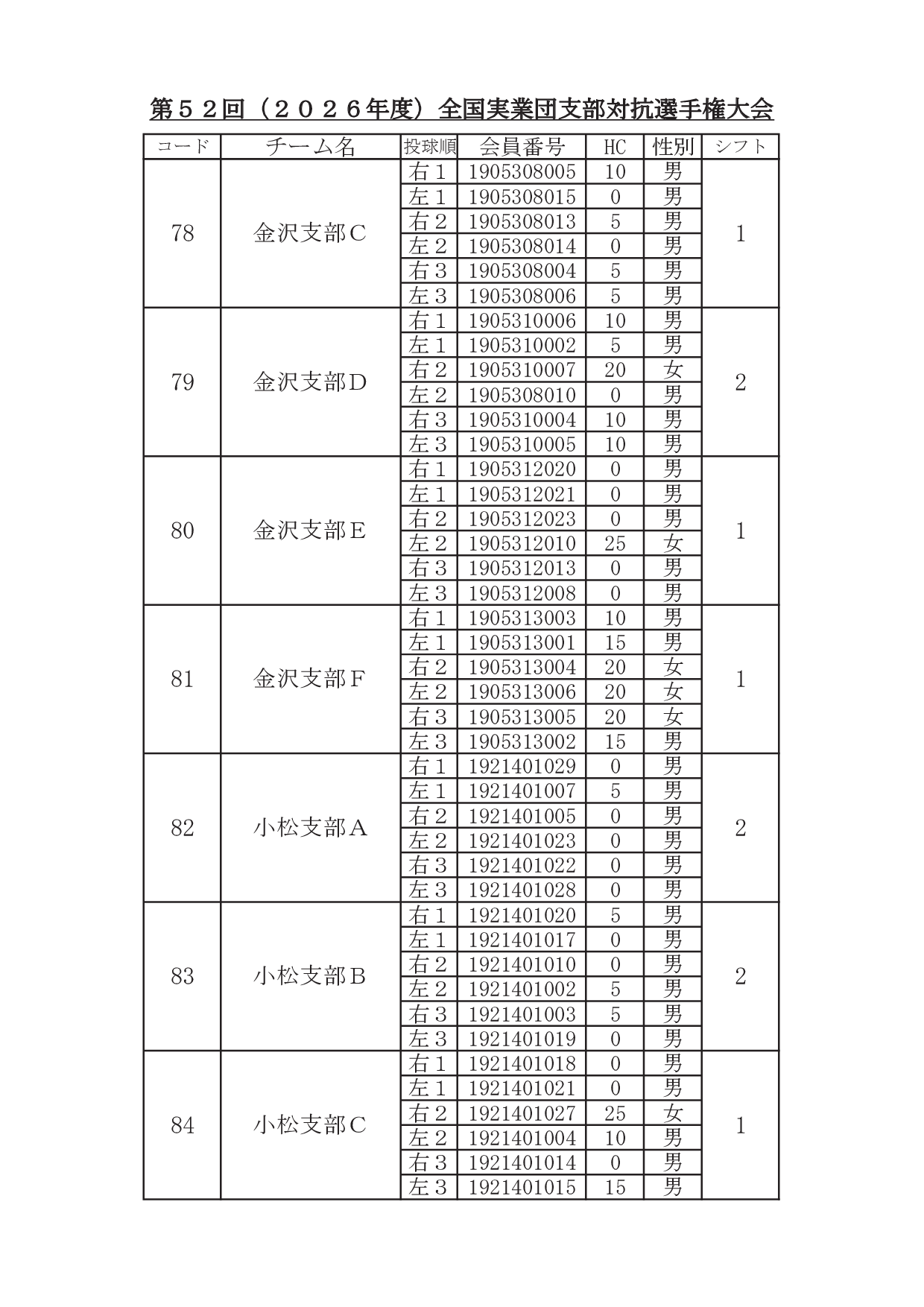 2026年1月29日 / 最終更新日時 : 2026年1月31日 東田 達也 支部対抗選手権 ●支部対抗選手権大会 シフト分け 寺尾杯争奪 第52回 支部対抗選手権大会(6人チーム戦、2026年3月7日~8日、稲沢グランドボウル)参加チームのシフト分けをお知らせいたします。 ※ 競技委員は、当日パンフレットにてご確認ください。 大会要項他はこちら ↓ ↓ ↓ ●寺尾杯争奪 第52回 支部対抗選手権大会 募集要項・申込書 ●支部対抗選手権大会 オイルパターン いいね:いいね 読み込み中…FacebookXCopy