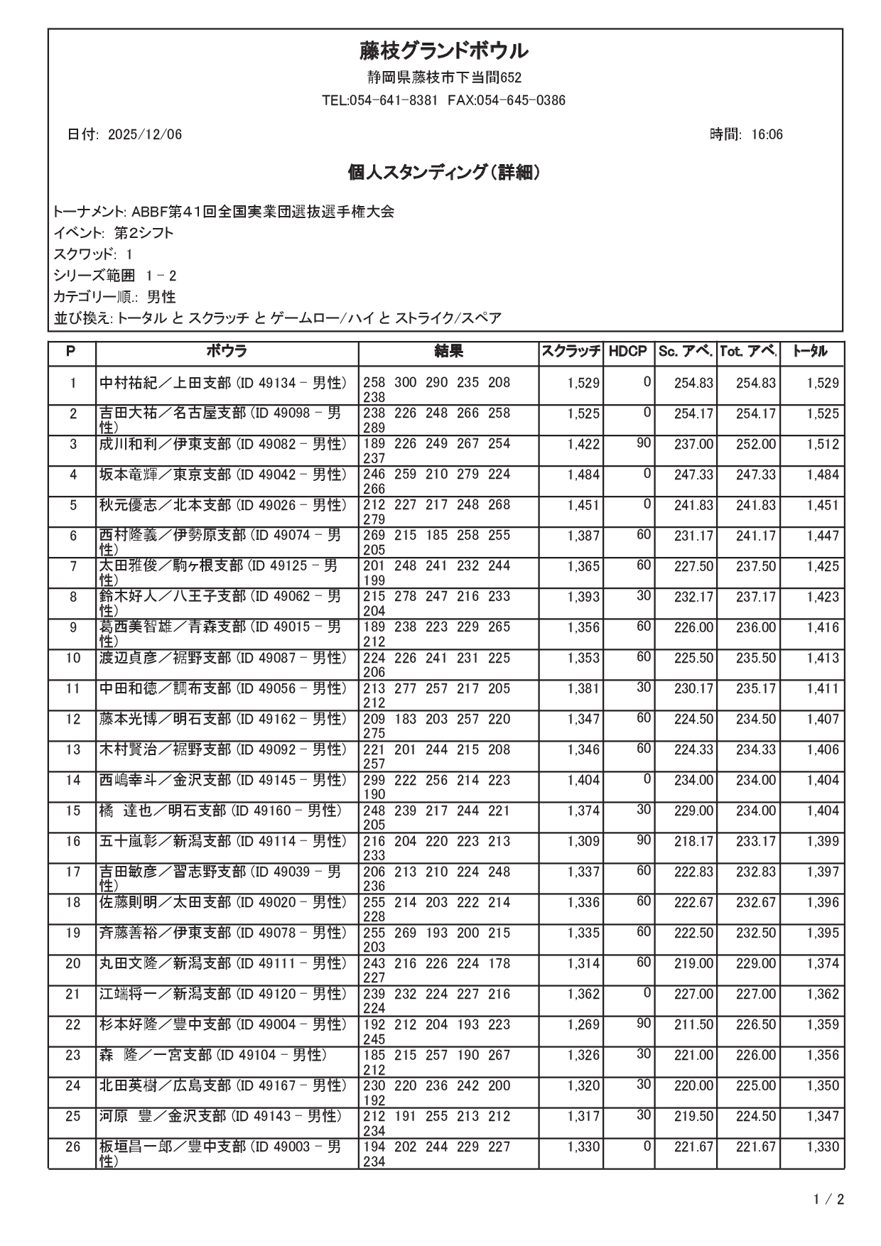 第41回 選抜選手権大会<2シフト:予選2回戦終了時点>