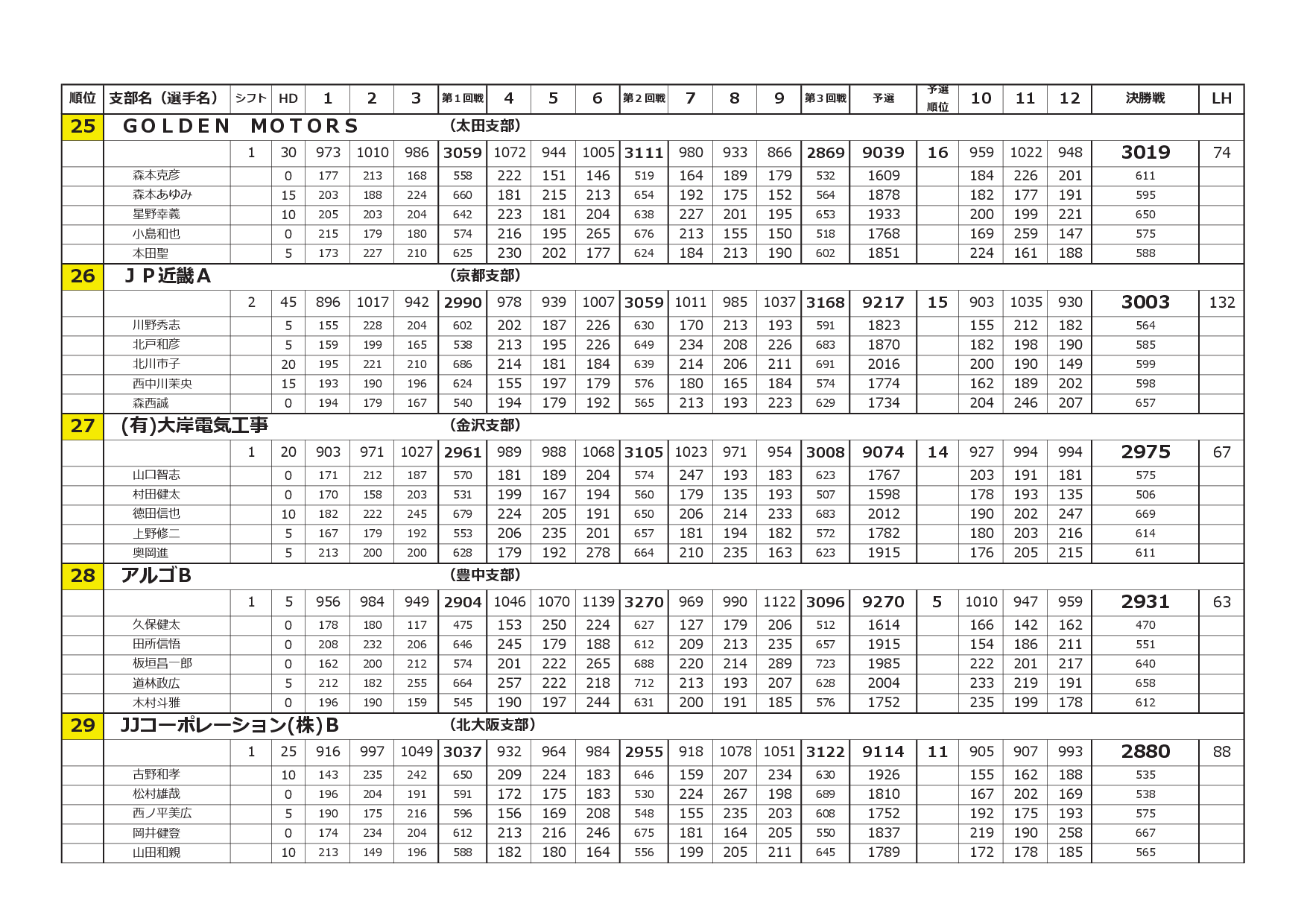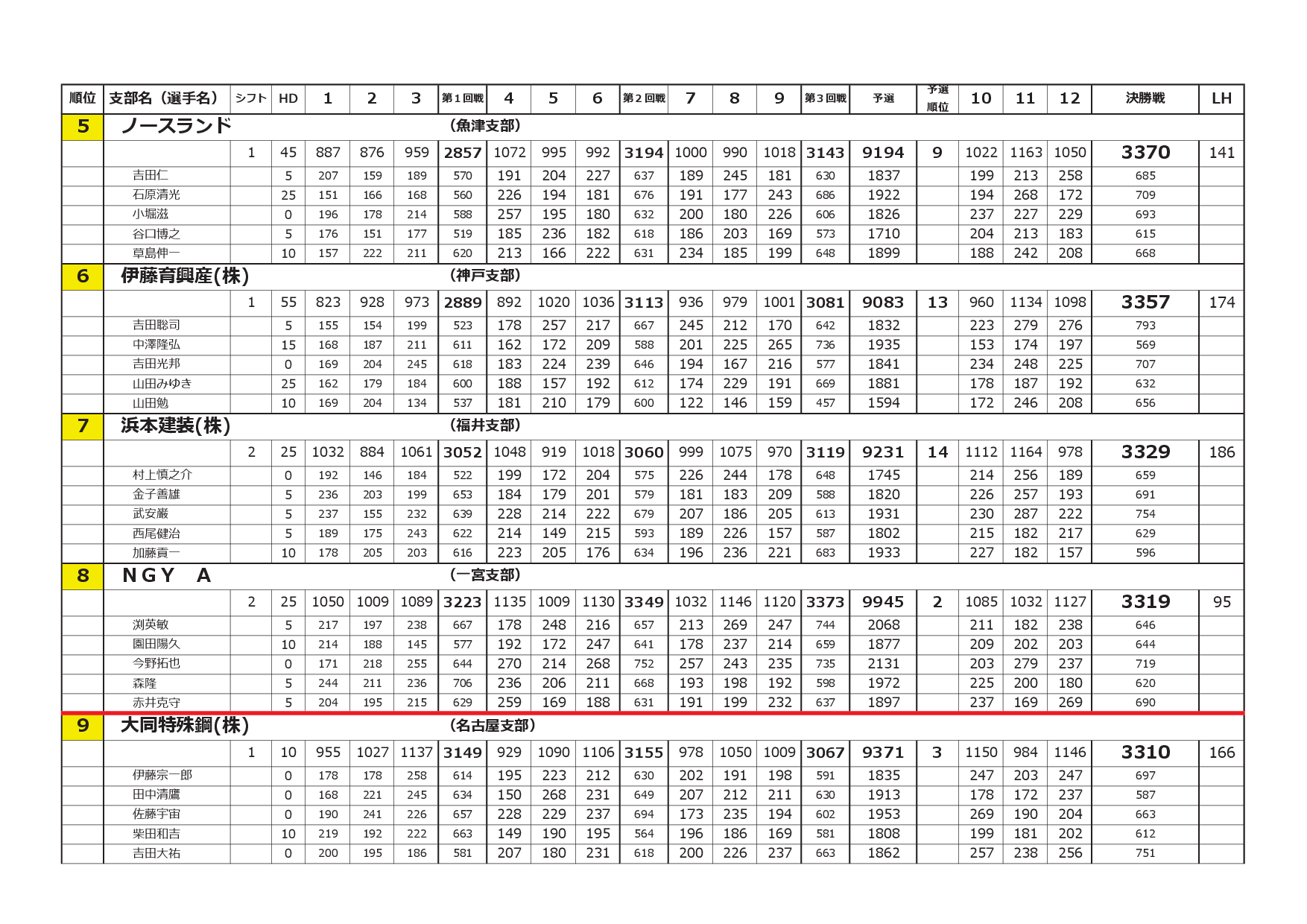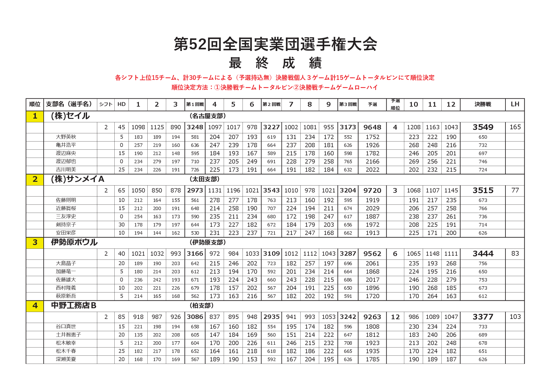 - ハイシリーズ賞:サンメイAチーム 3,543点