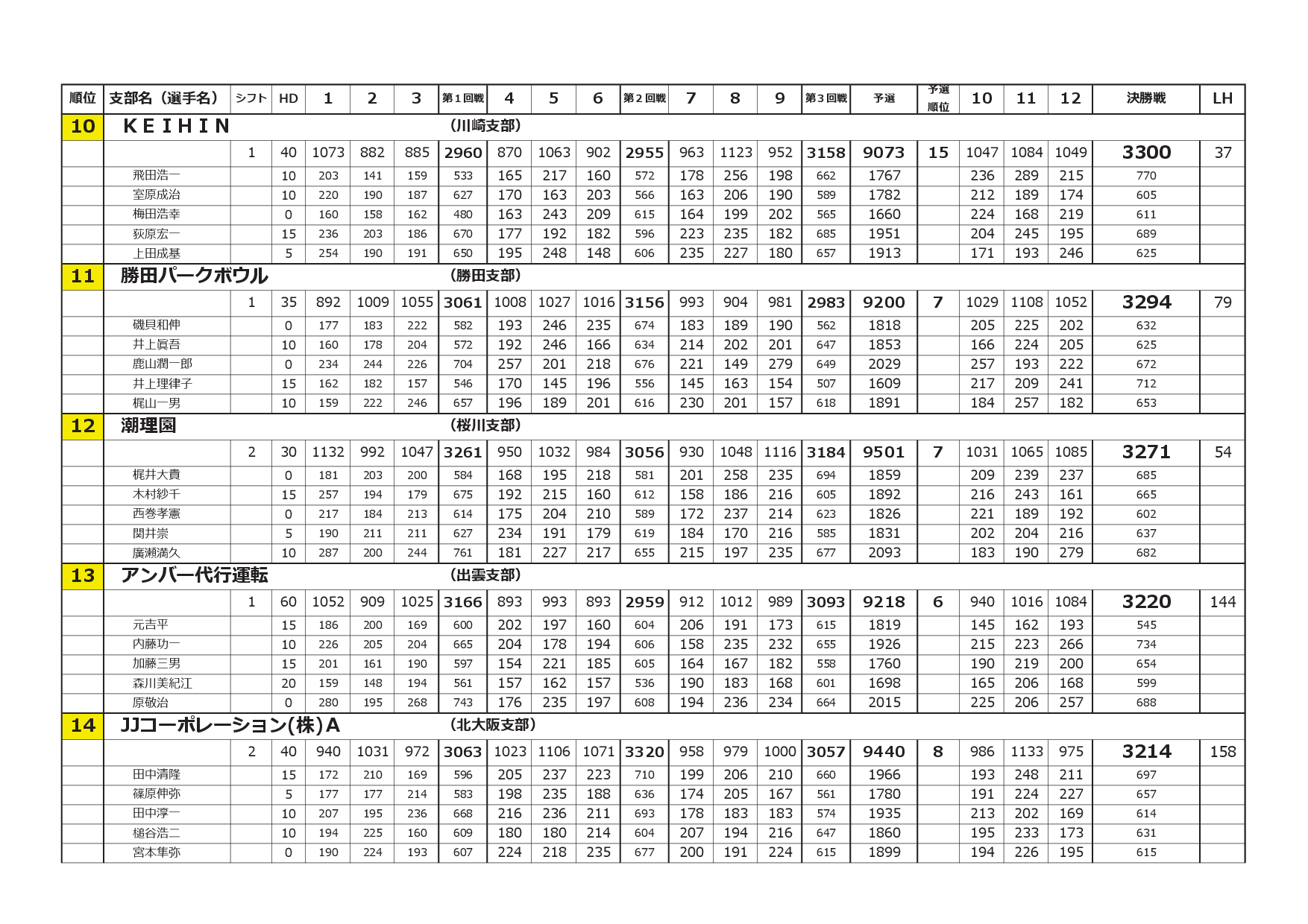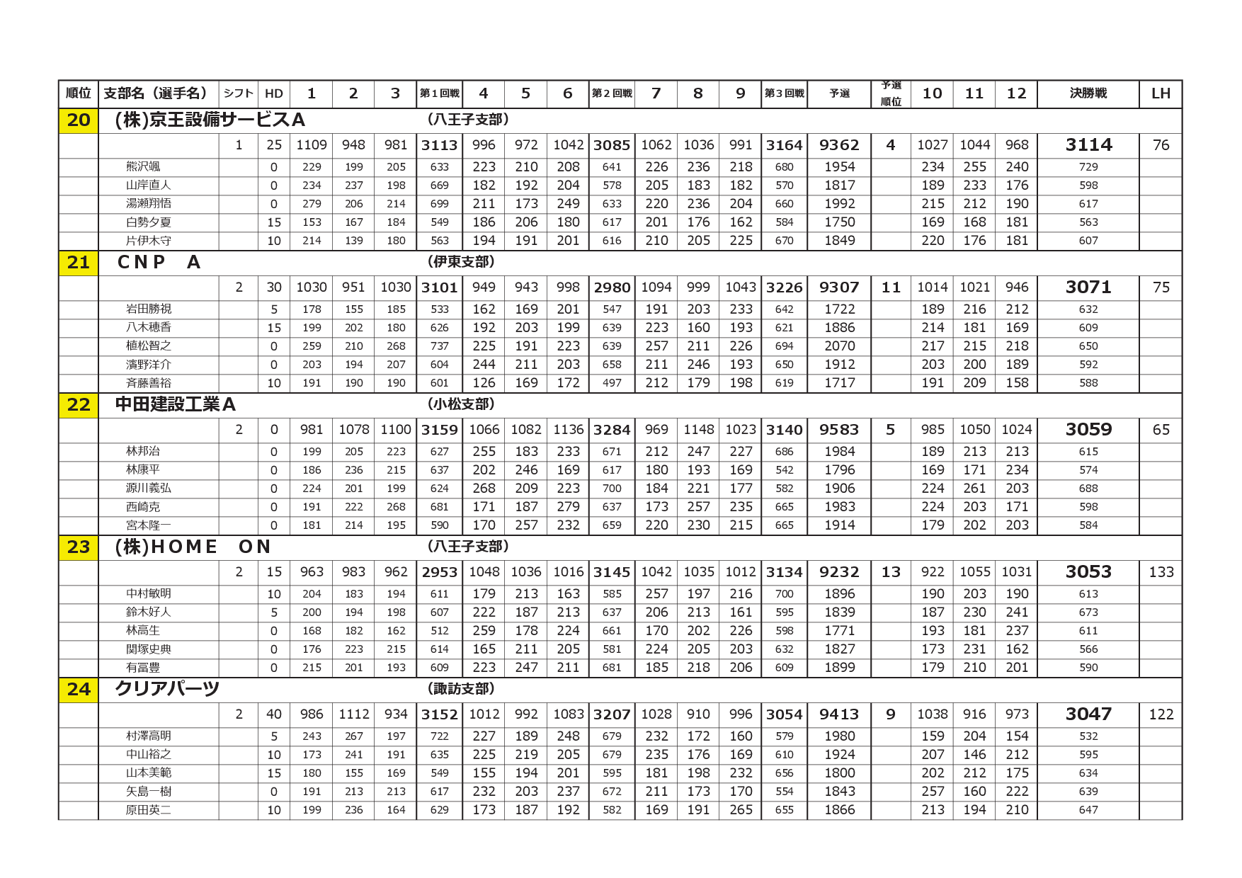 - 各シフト上位15チーム(計30チーム)が決勝進出(ただしメイクチームを除く法人チームのみ)
