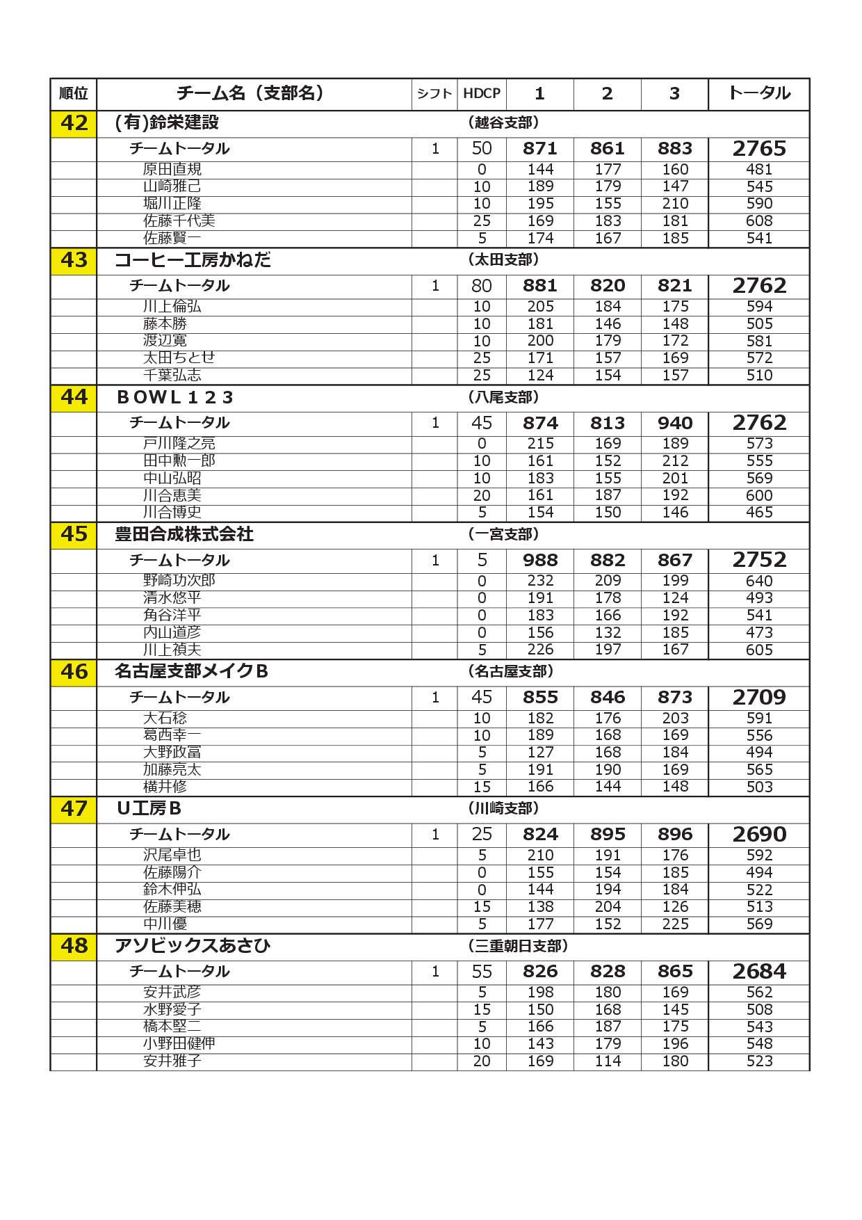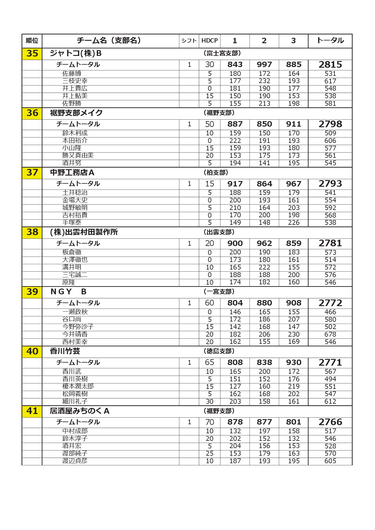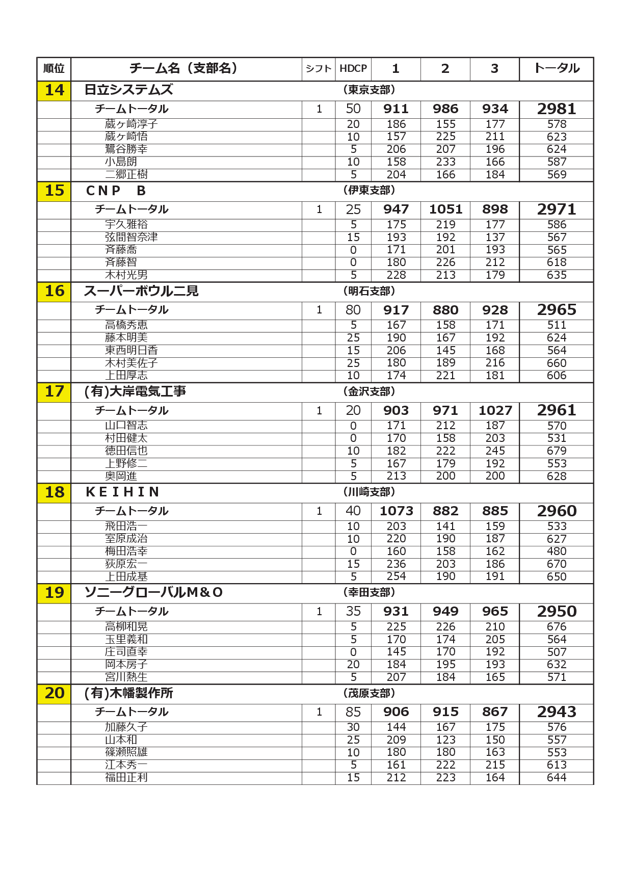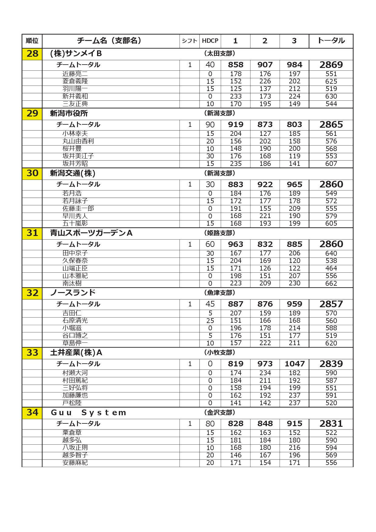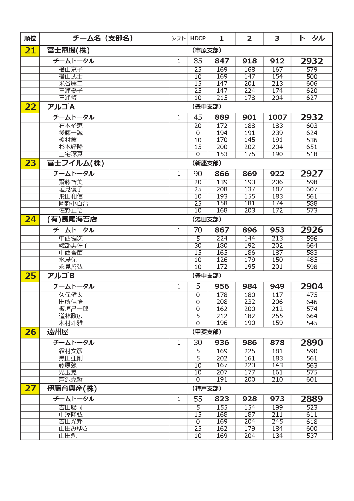- 各シフト上位15チーム(計30チーム)が決勝進出(ただし法人チームのみ)