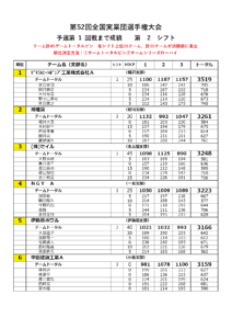 第52回 実業団選手権大会<2シフト:予選1回戦終了時点>