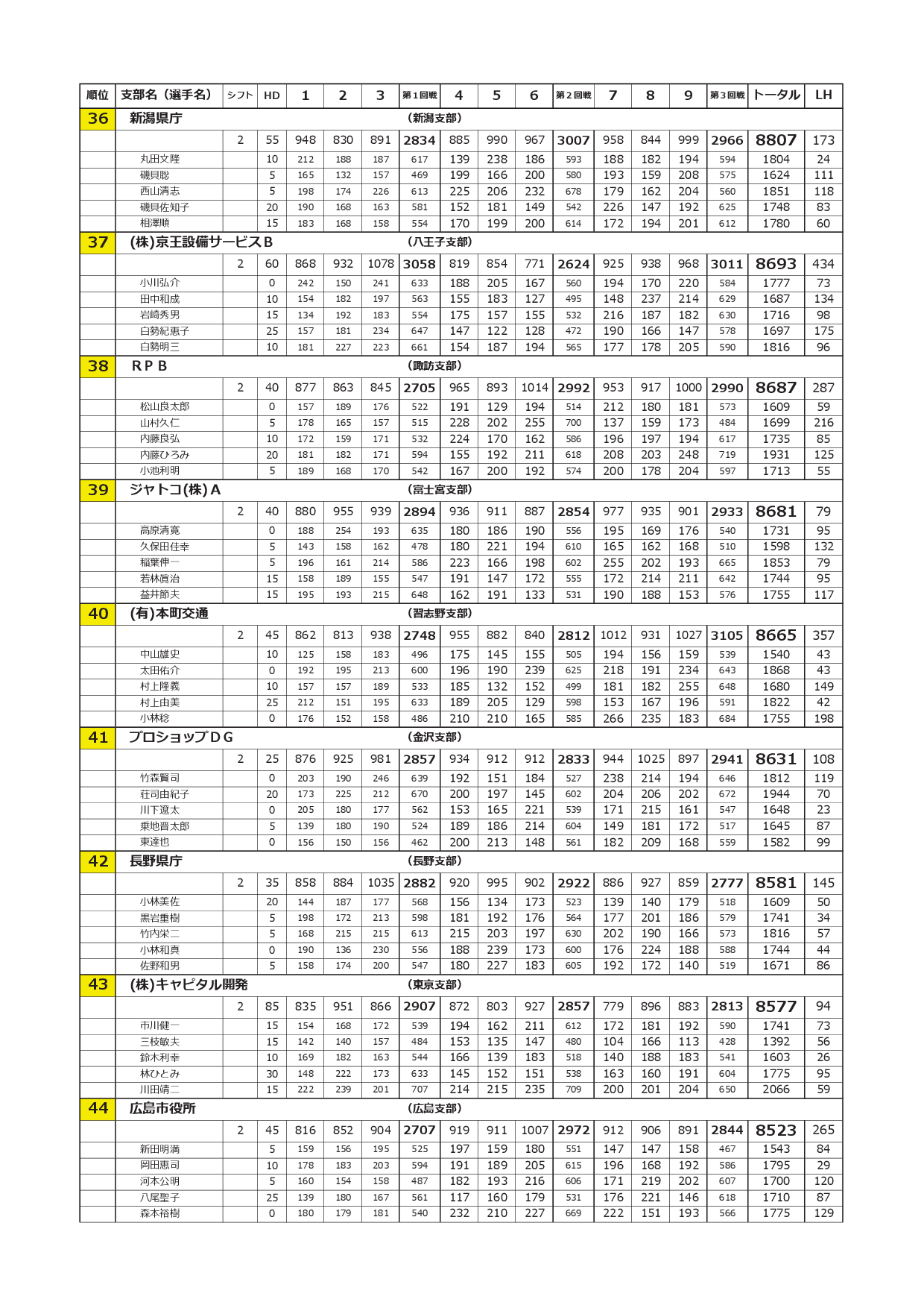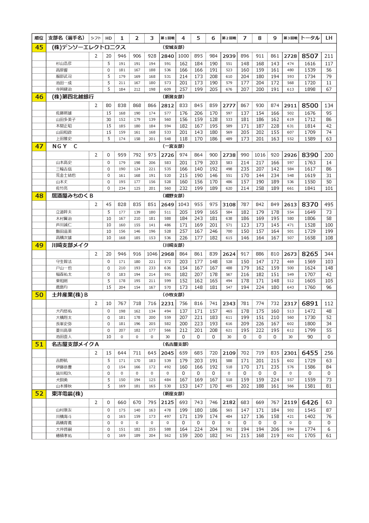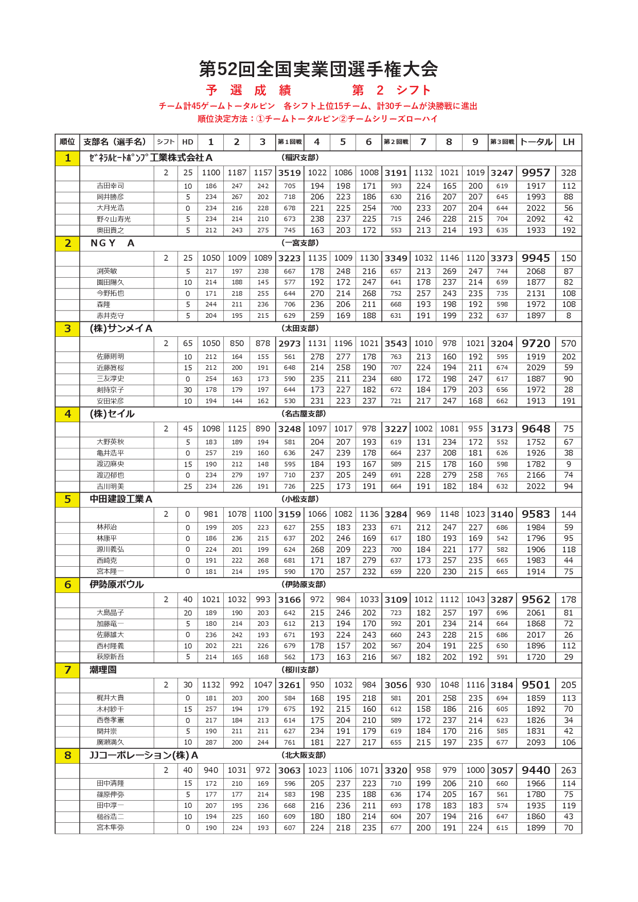 第52回 実業団選手権大会<2シフト:予選終了時点>