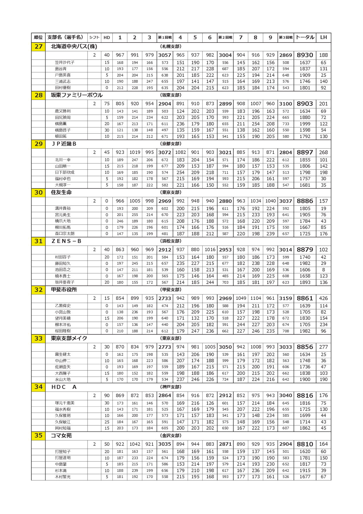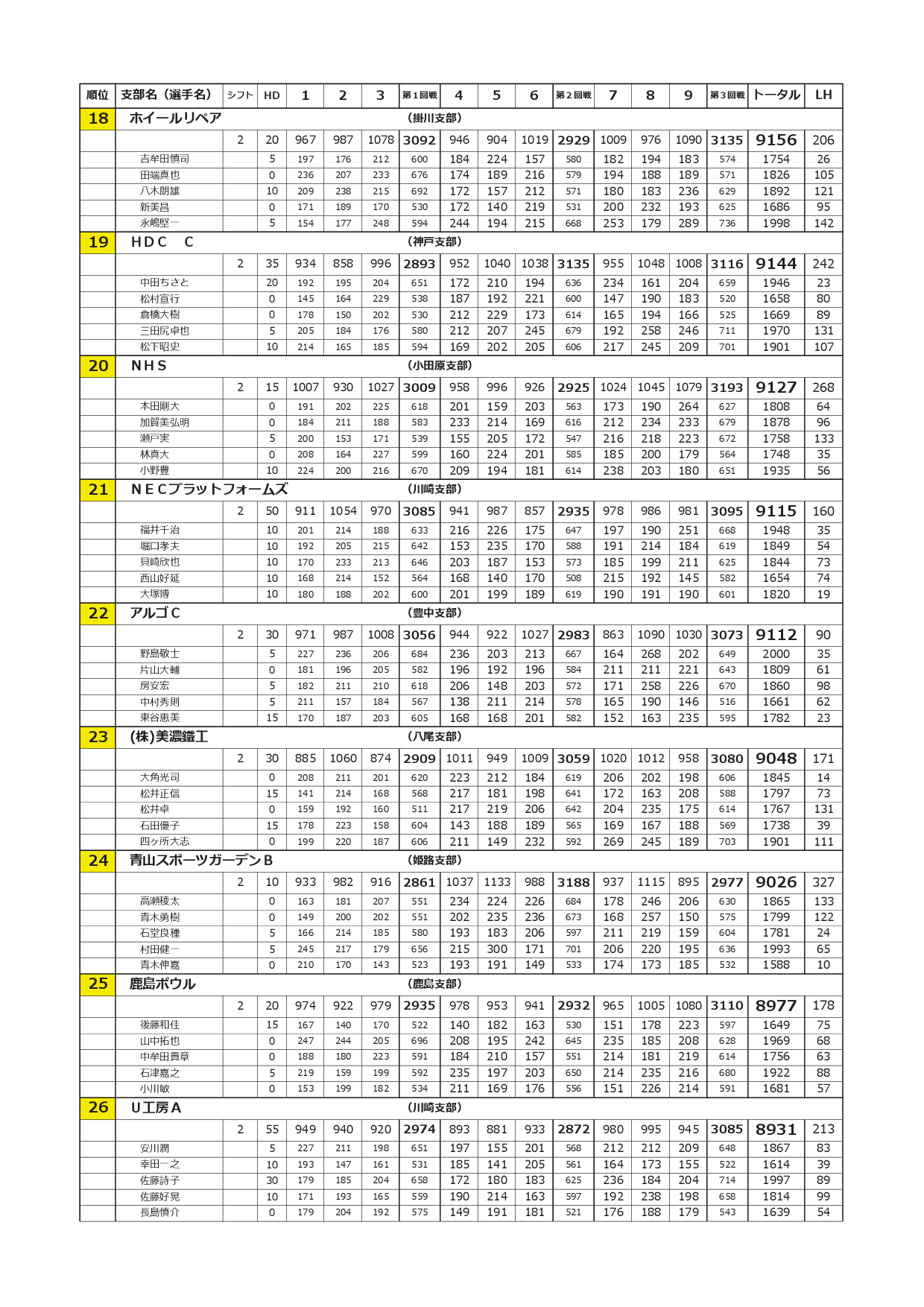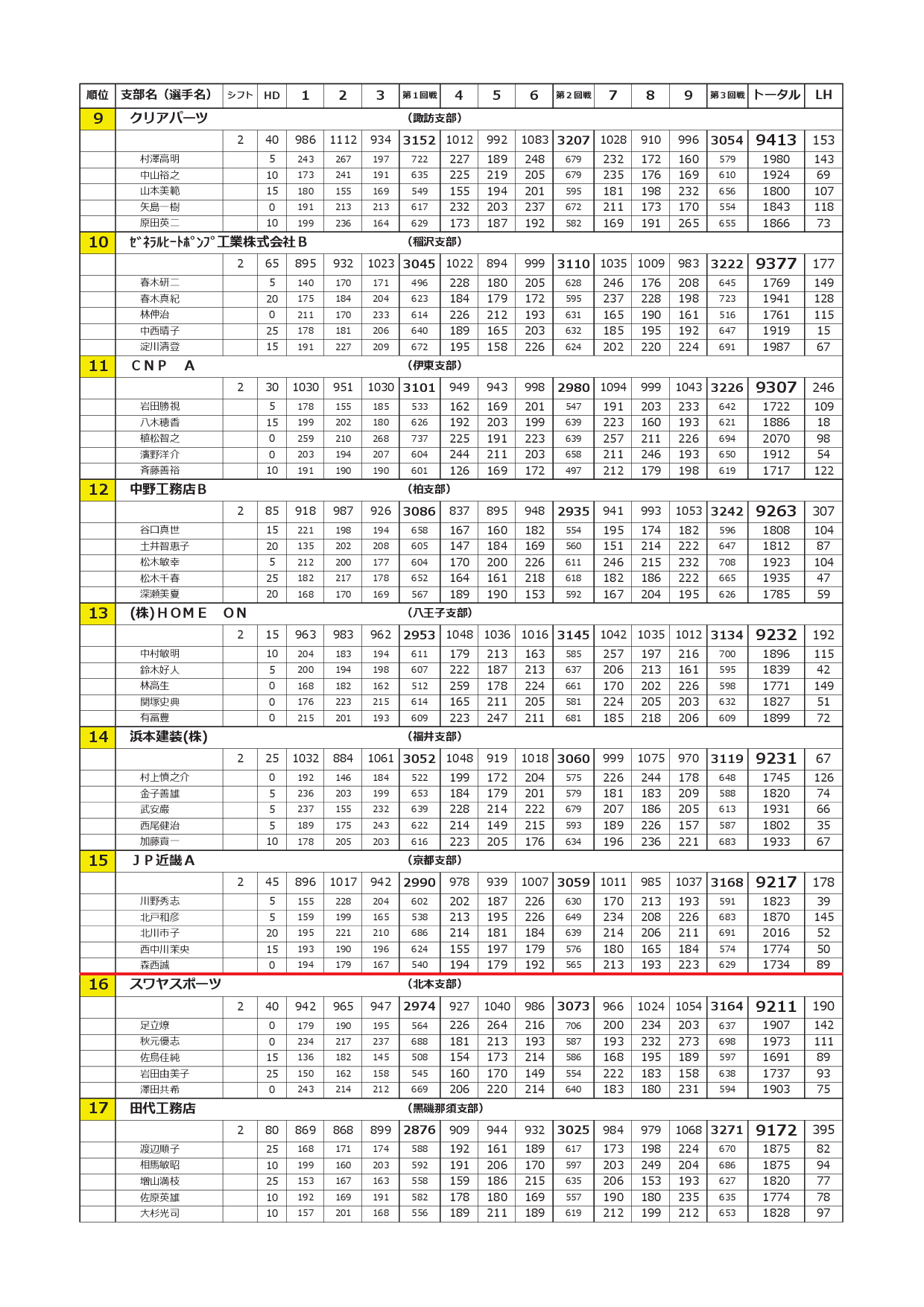 第52回 実業団選手権大会<2シフト:予選終了時点>