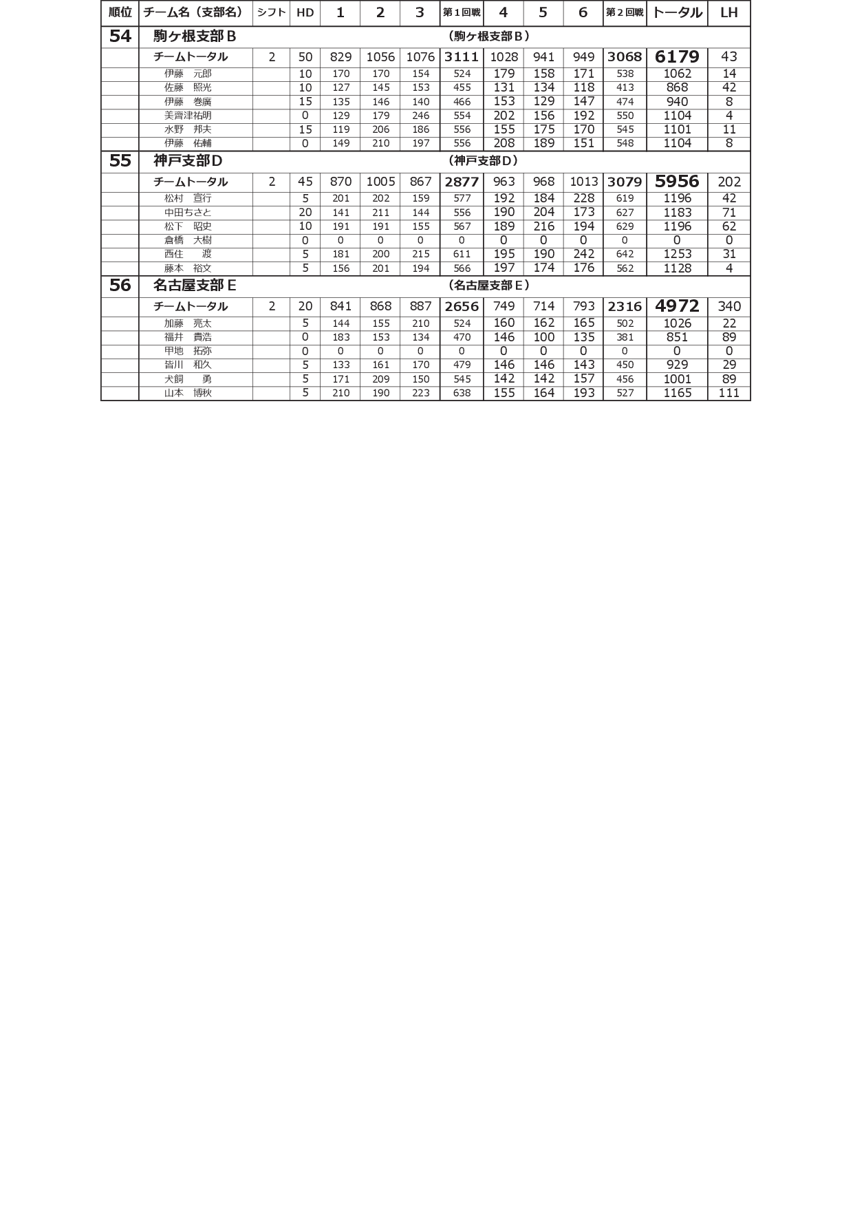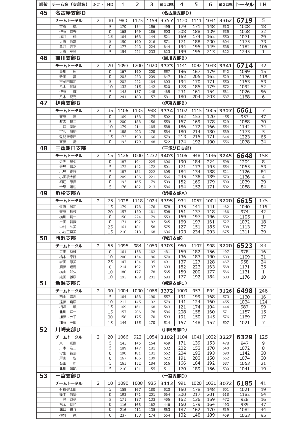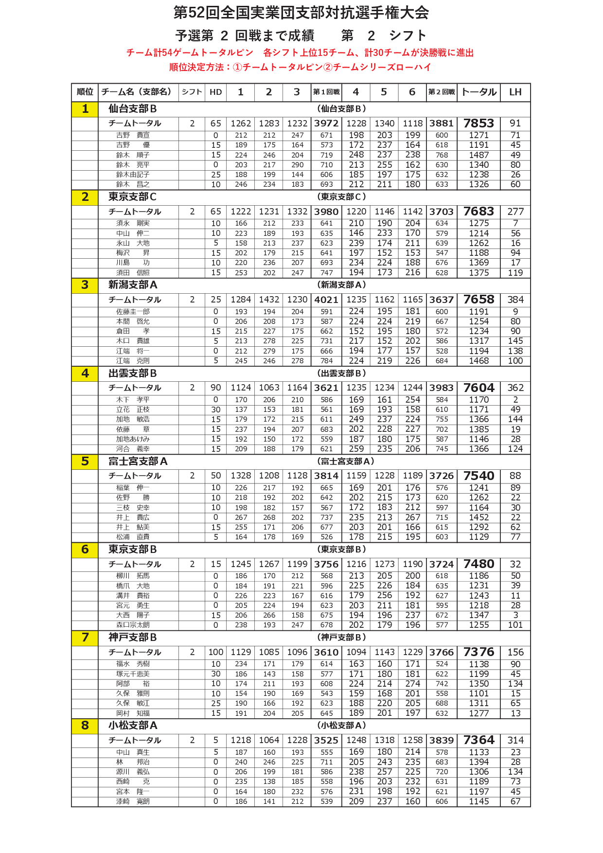 寺尾杯争奪 第52回 全国実業団支部対抗選手権大会<2シフト:予選2回戦終了時点>