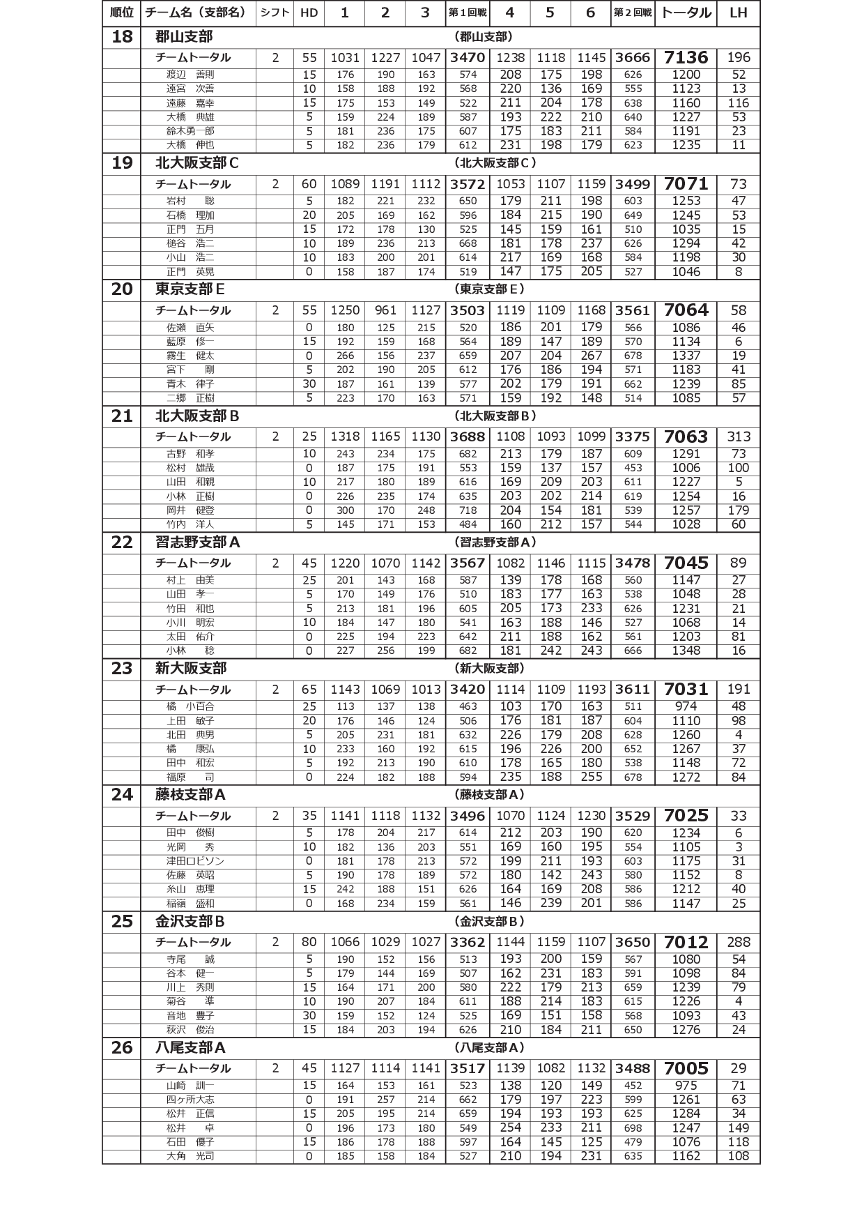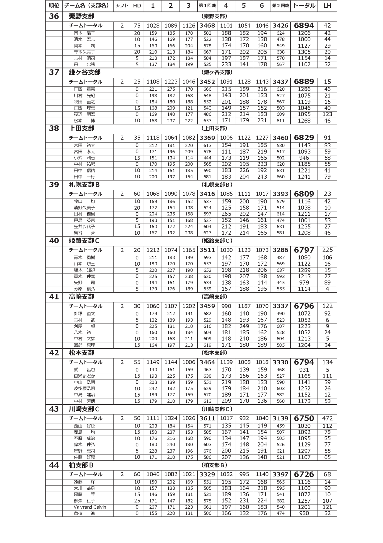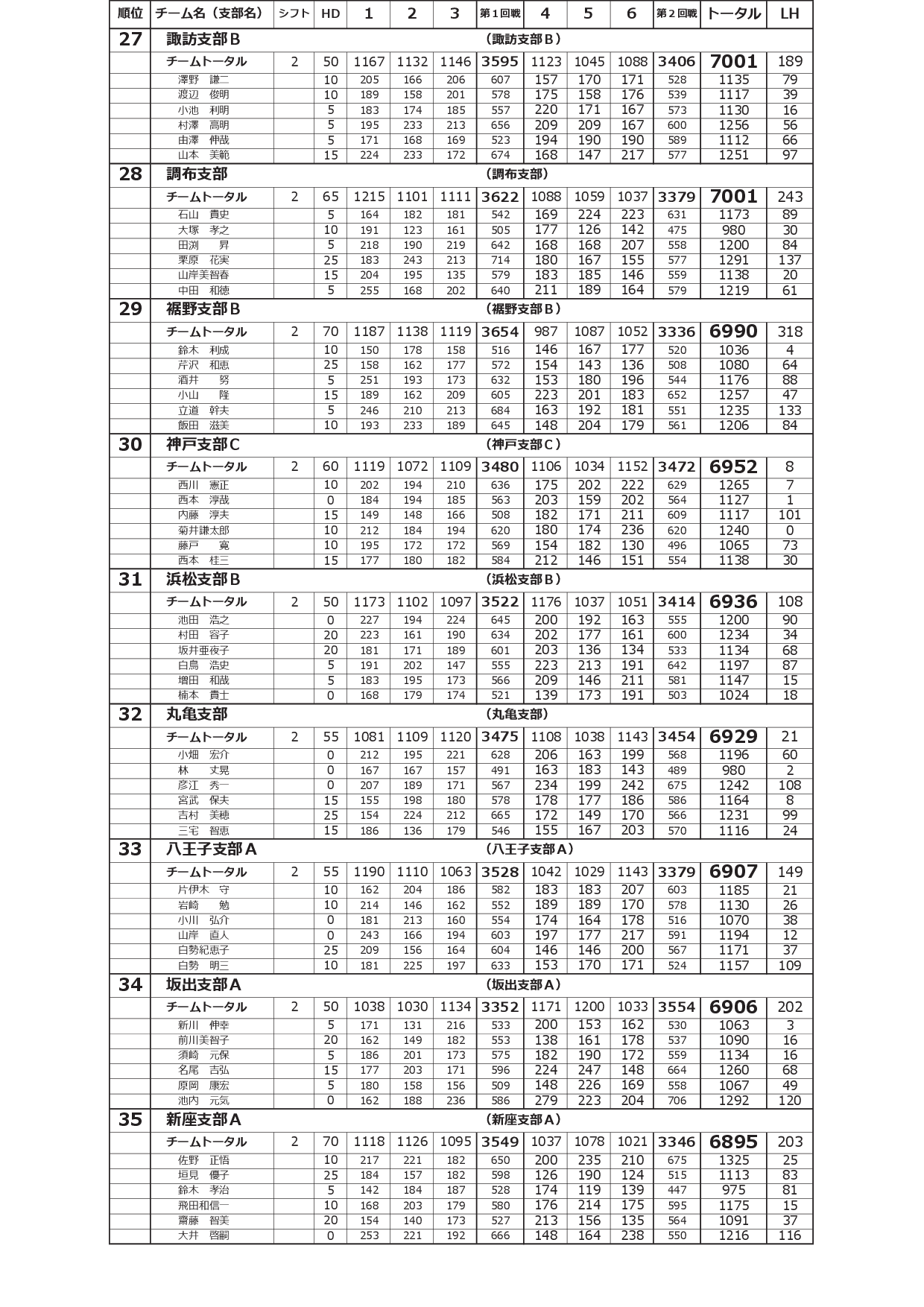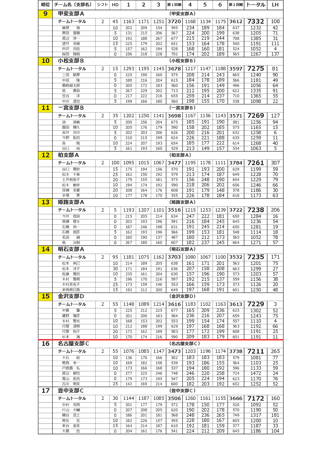 寺尾杯争奪 第52回 全国実業団支部対抗選手権大会<2シフト:予選2回戦終了時点>