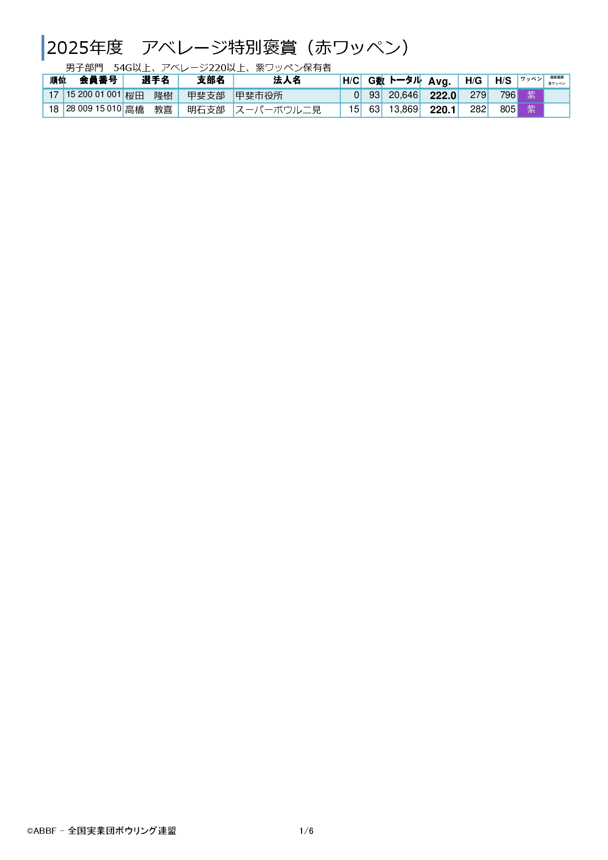 2025年度 ●赤ワッペン取得者 男子 女子 EXCEL ●紫ワッペン取得者 男子 女子 ●黒ワッペン取得者 男子 女子 2024年度 ●赤ワッペン取得者 男子 女子 EXCEL ●紫ワッペン取得者 男子 女子 ●黒ワッペン取得者 男子 女子 2023年度 ●赤ワッペン取得者 赤ワッペン 2023 ●紫ワッペン取得者 紫ワッペン 2023 ●黒ワッペン取得者 黒ワッペン 2023 2022年度 ●紫ワッペン取得者 男子 女子 EXCEL ●黒ワッペン取得者 男子 女子 2019年時点 ●黒ワッペン保持者 男子 女子 EXCEL ●新ワッペン(紫ワッペン、赤ワッペン)について いいね:いいね 読み込み中…FacebookXCopy